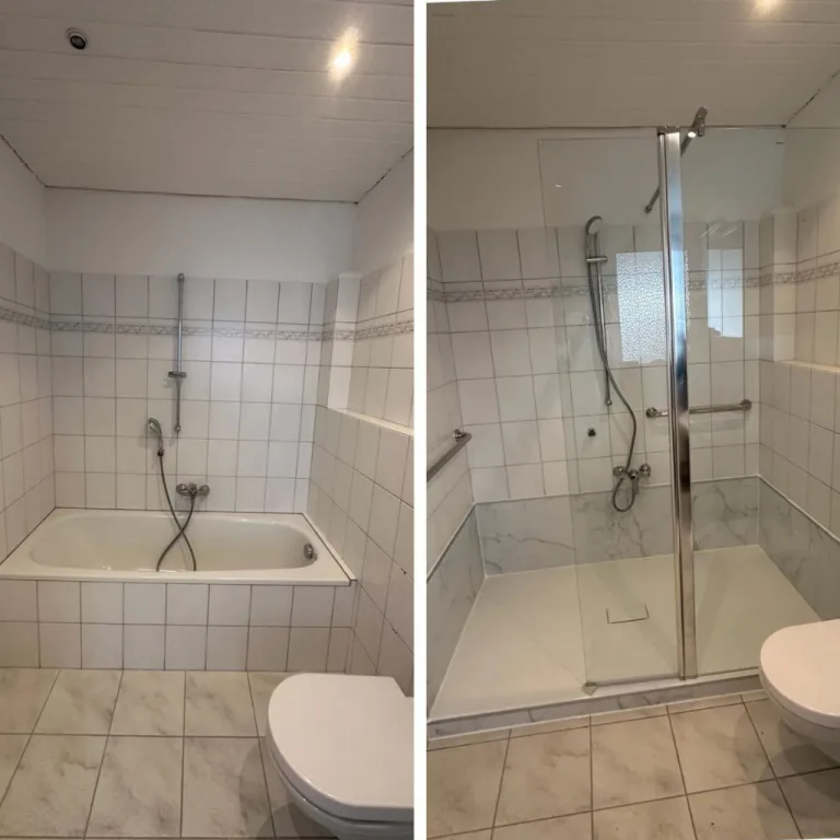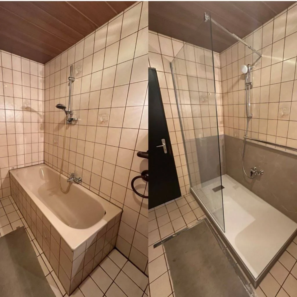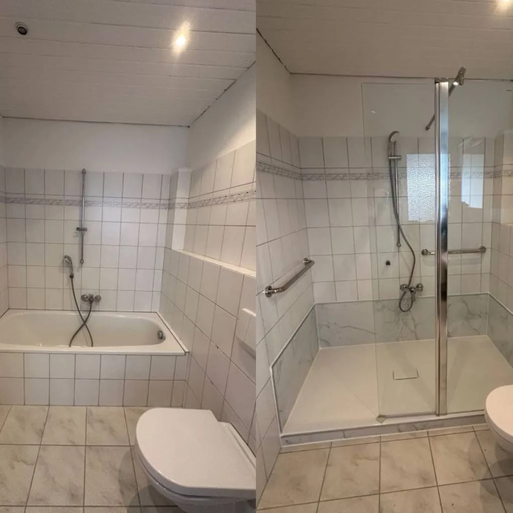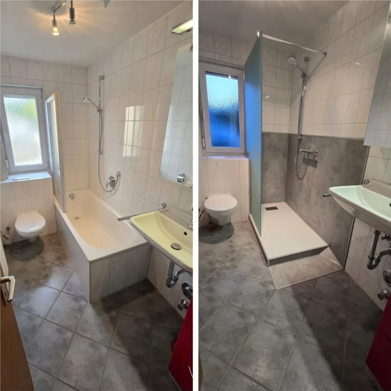 Verwandeln Sie Ihr Badezimmer mit modernen Lösungen in eine stilvolle Wohlfühloase. Unsere Vorher-Nachher-Bilder zeigen eindrucksvoll, wie aus veralteten Bädern pflegeleichte, komfortable Räume werden. Lassen Sie sich inspirieren und entdecken Sie, welche Möglichkeiten für Ihre Badsanierung bestehen!