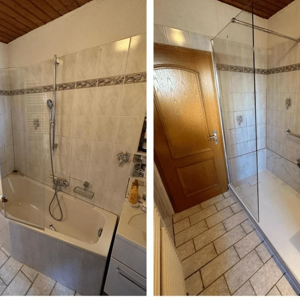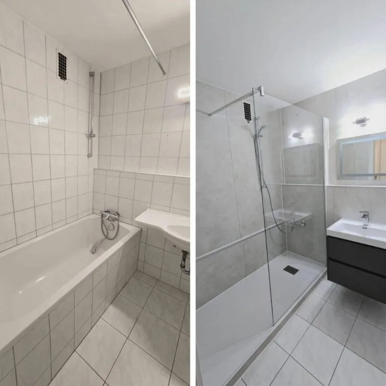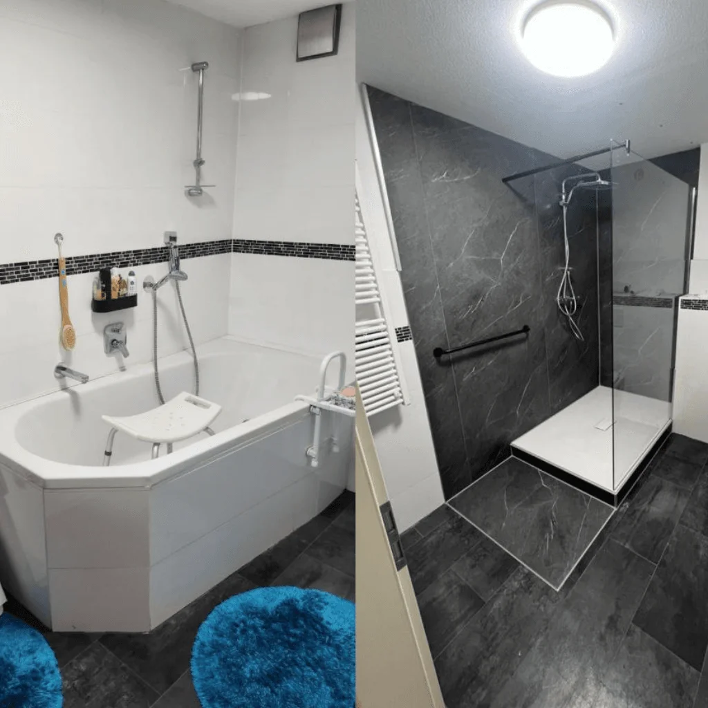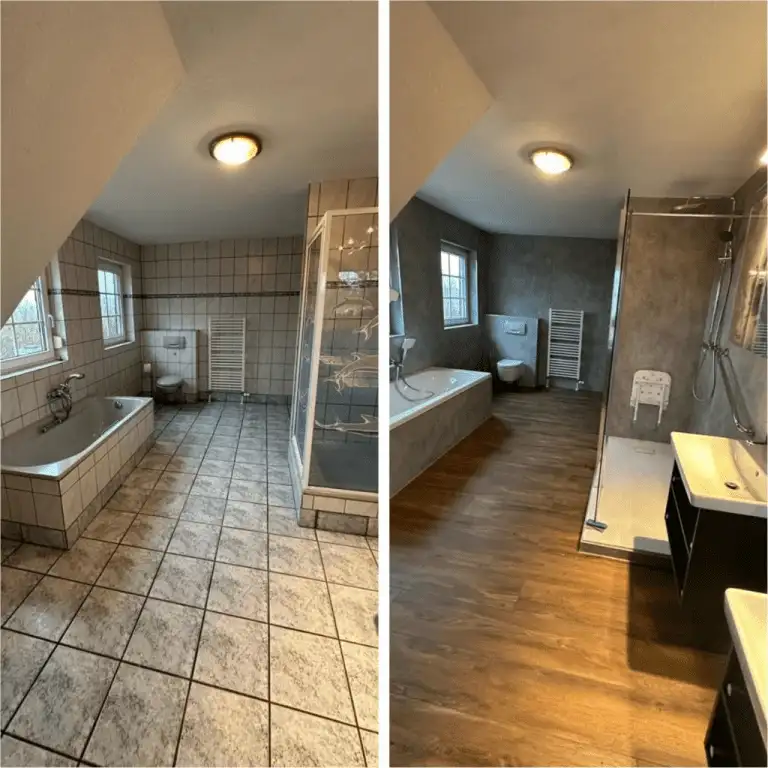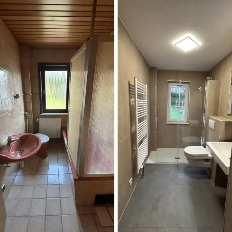 Verwandeln Sie Ihr Badezimmer mit modernen Lösungen in eine stilvolle Wohlfühloase. Unsere Vorher-Nachher-Bilder zeigen eindrucksvoll, wie aus veralteten Bädern pflegeleichte, komfortable Räume werden. Lassen Sie sich inspirieren und entdecken Sie, welche Möglichkeiten für Ihre Badsanierung bestehen!